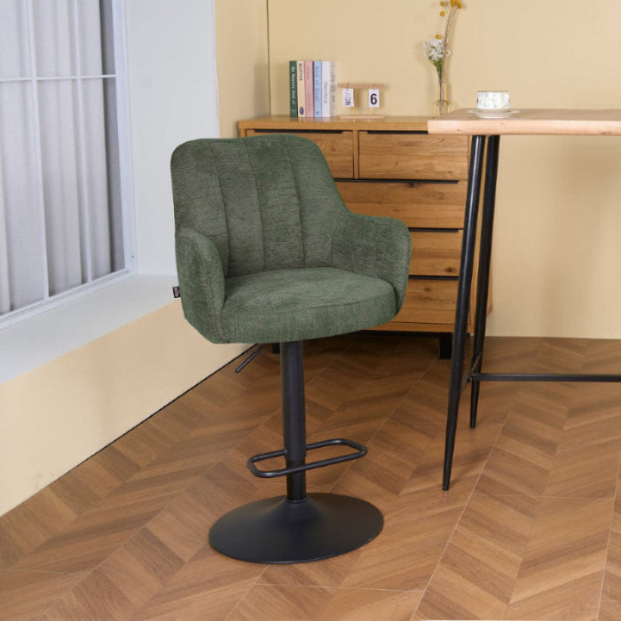 El Banco Alto Amsterdam eleva la experiencia en cualquier barra o desayunador gracias a su diseño contemporáneo y su funcionalidad intuitiva. Su asiento giratorio de 360° y su mecanismo de alturas ajustables permiten adaptarlo a distintos espacios y momentos del día, ofreciendo libertad y fluidez en cada uso.