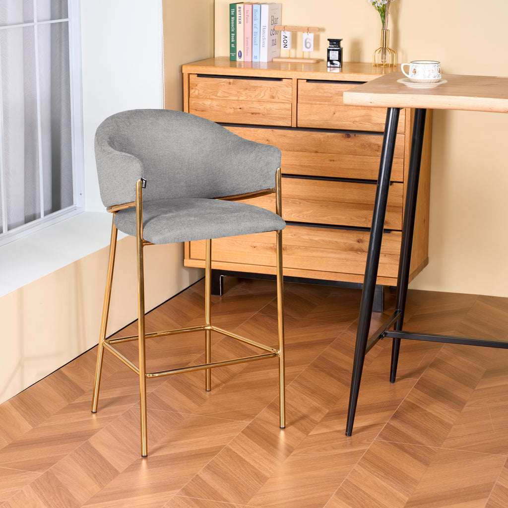 El Banco Berlín redefine la estética moderna con una silueta limpia y proporciones equilibradas. Su estructura metálica en acabado dorado refleja la luz con sutileza, llenando la barra o cocina de un brillo sofisticado y contemporáneo.