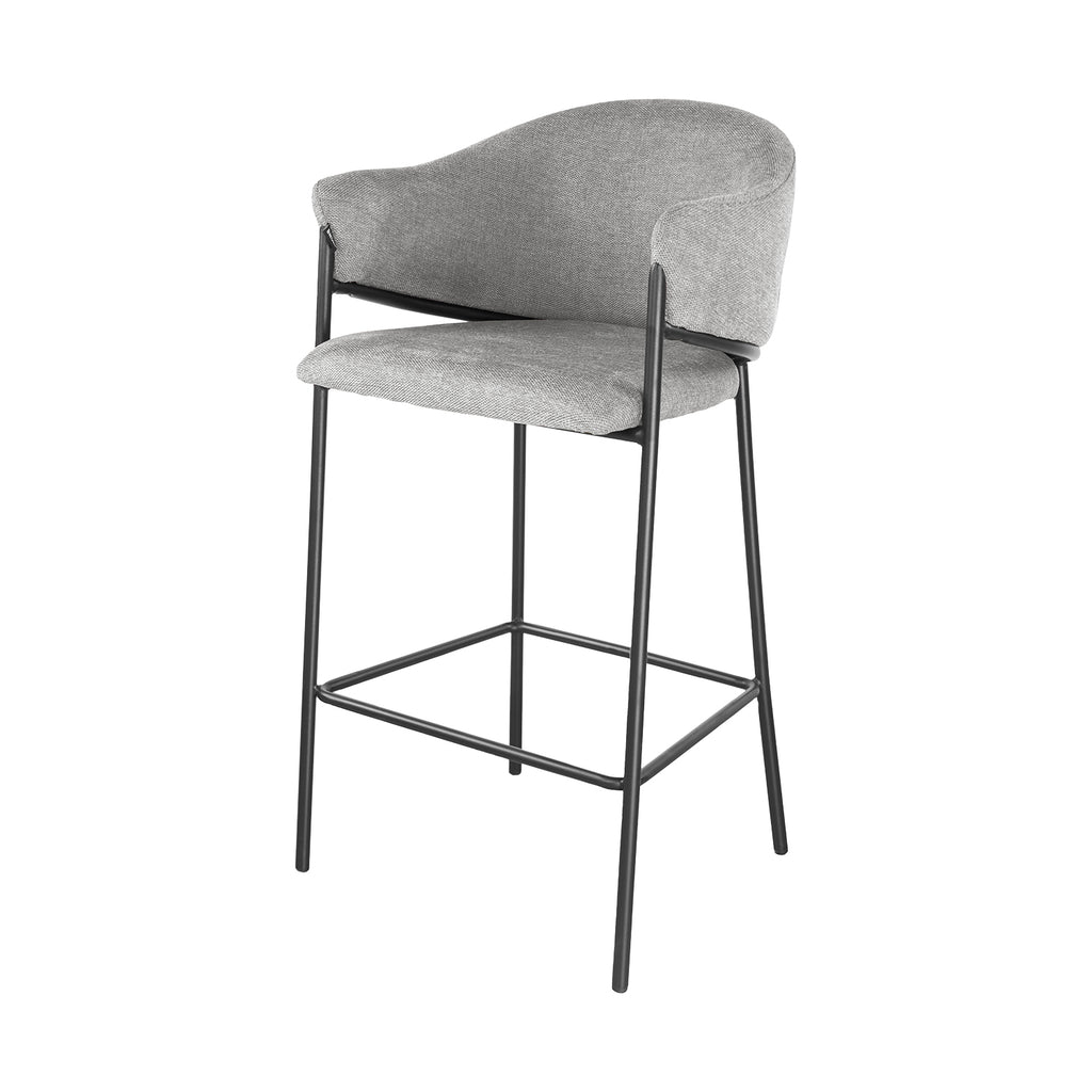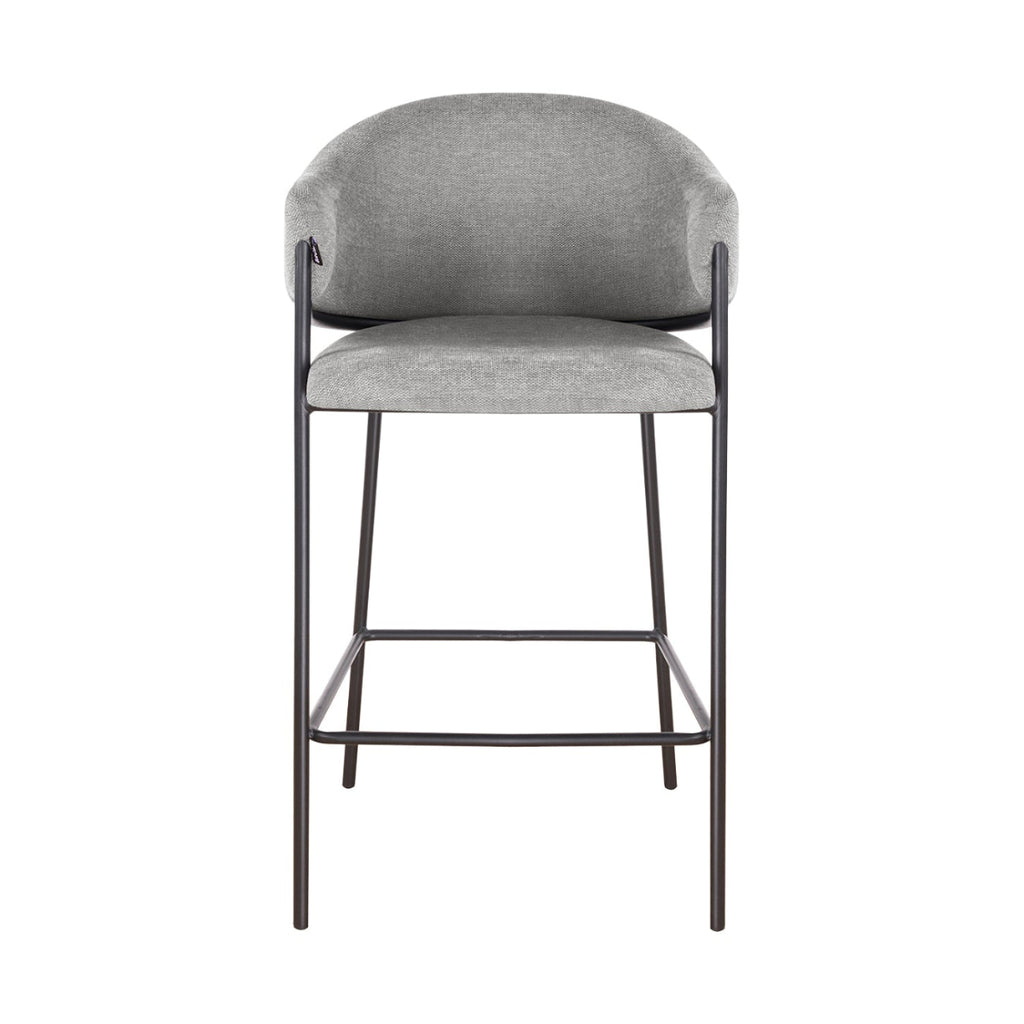 El asiento tapizado ofrece una textura suave y agradable, ideal para disfrutar momentos largos en la barra o la cocina. Su forma estilizada alarga visualmente el espacio y aporta una sensación de armonía que complementa tanto interiores modernos como ambientes industriales o minimalistas.