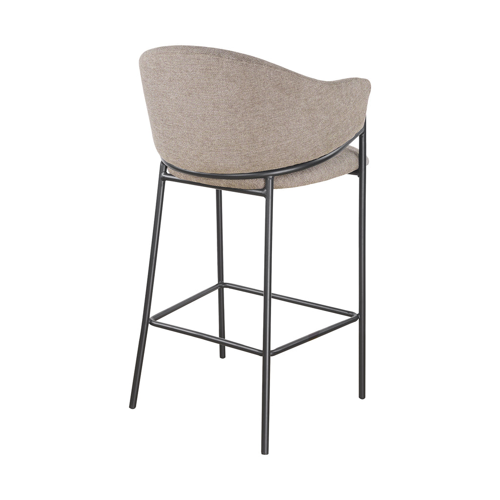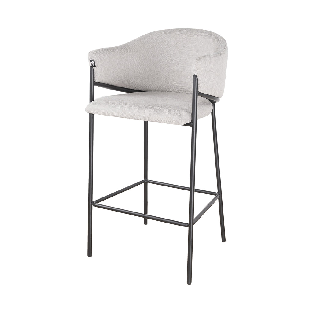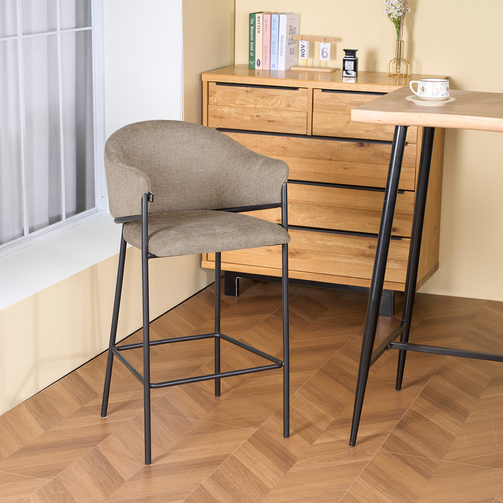 El asiento tapizado ofrece una textura suave y confortable, ideal para disfrutar de momentos largos en la barra o la cocina. Su diseño estilizado alarga visualmente el espacio, aportando equilibrio entre estética y funcionalidad.