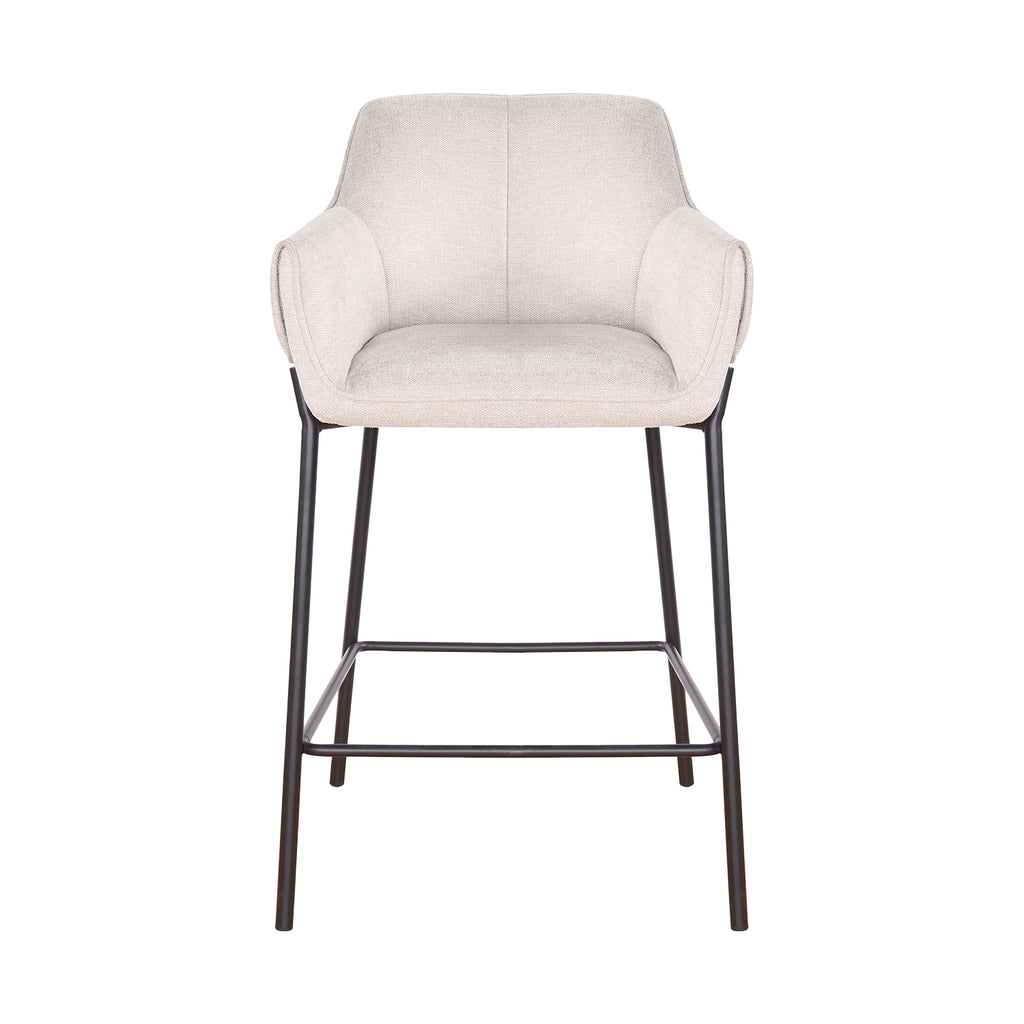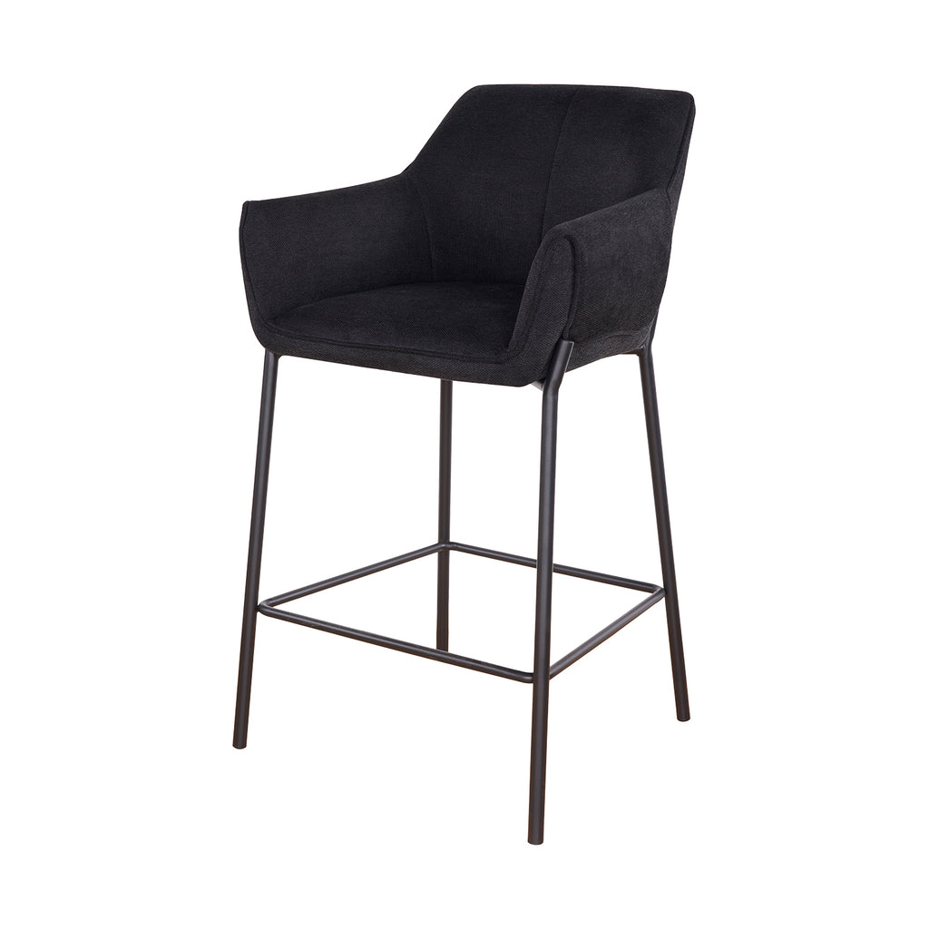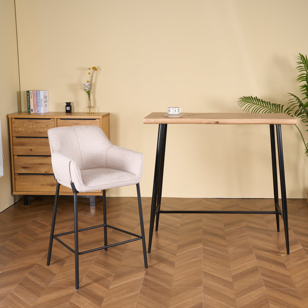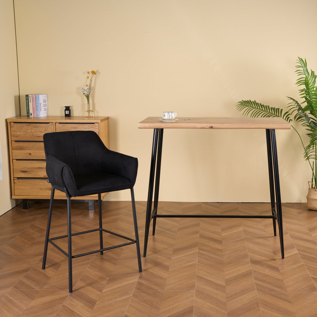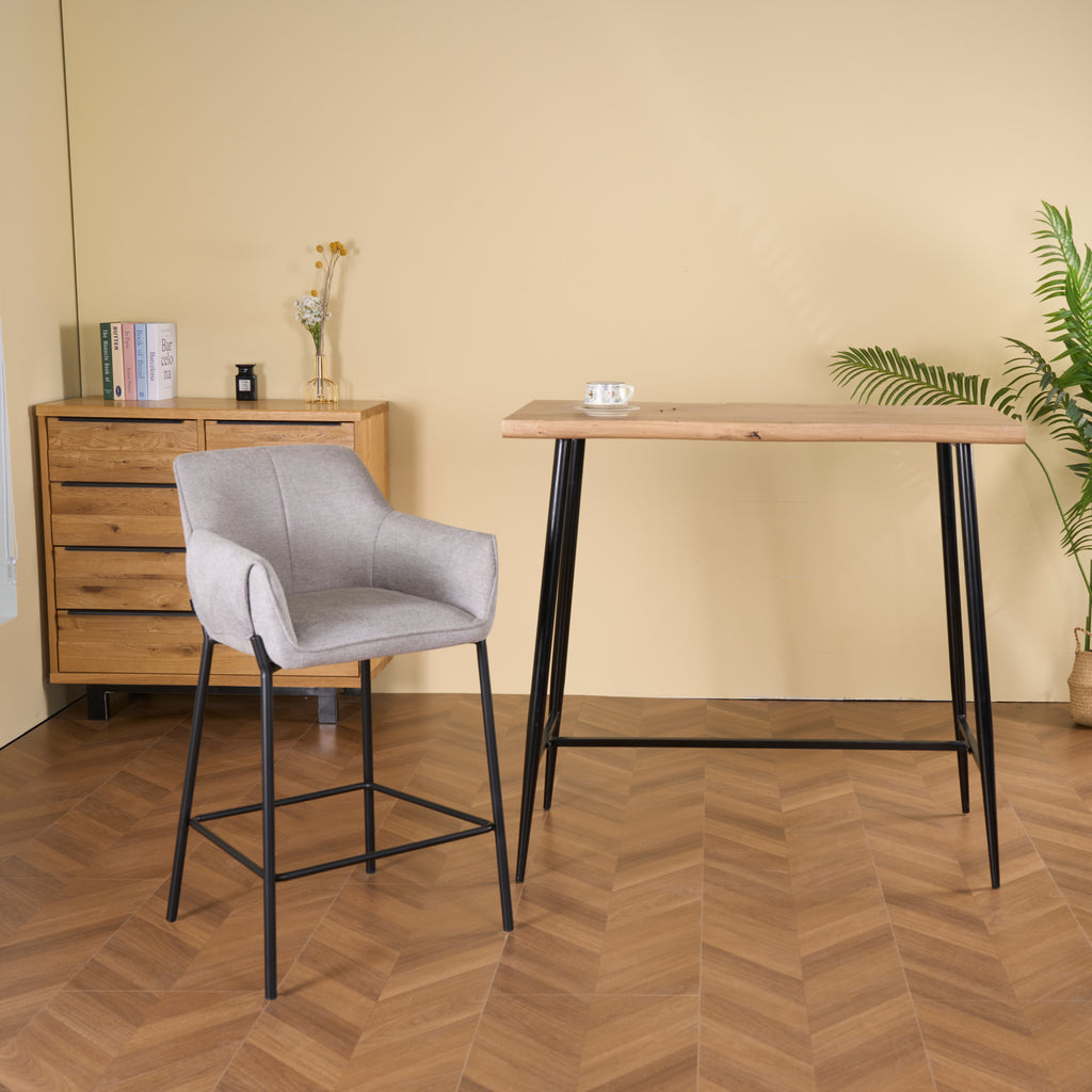 Con una estética contemporánea y líneas bien definidas, el Banco Toronto aporta equilibrio entre estilo y confort. Su estructura metálica con pata negra transmite solidez y modernidad, mientras que el asiento y respaldo tapizados en tela Belfast envuelven con una textura suave y agradable al tacto.