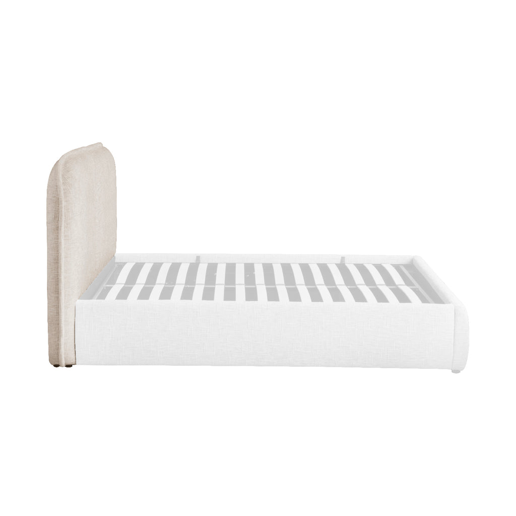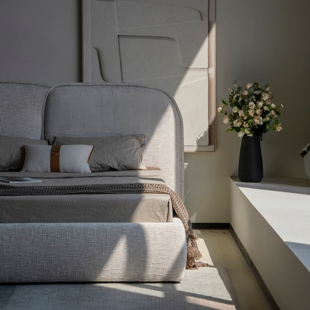 El volumen curvo de su estructura genera una sensación acogedora sin perder elegancia, convirtiéndose en un punto focal que transforma la habitación. Suavemente acolchada, ofrece apoyo cómodo para leer, descansar o disfrutar de una noche relajada.