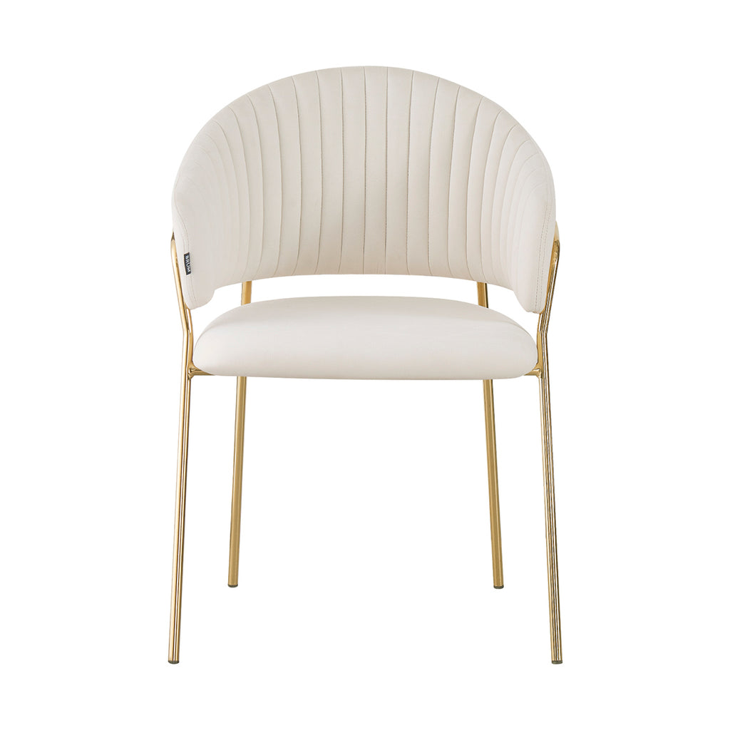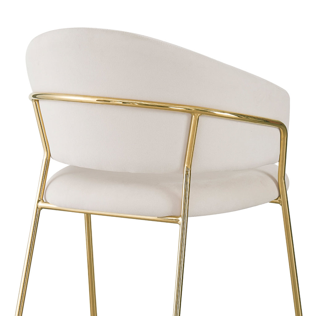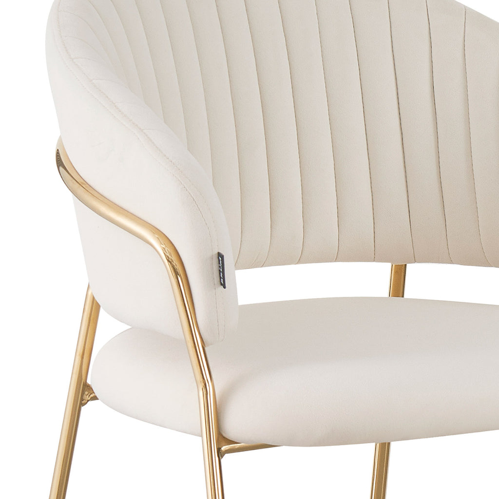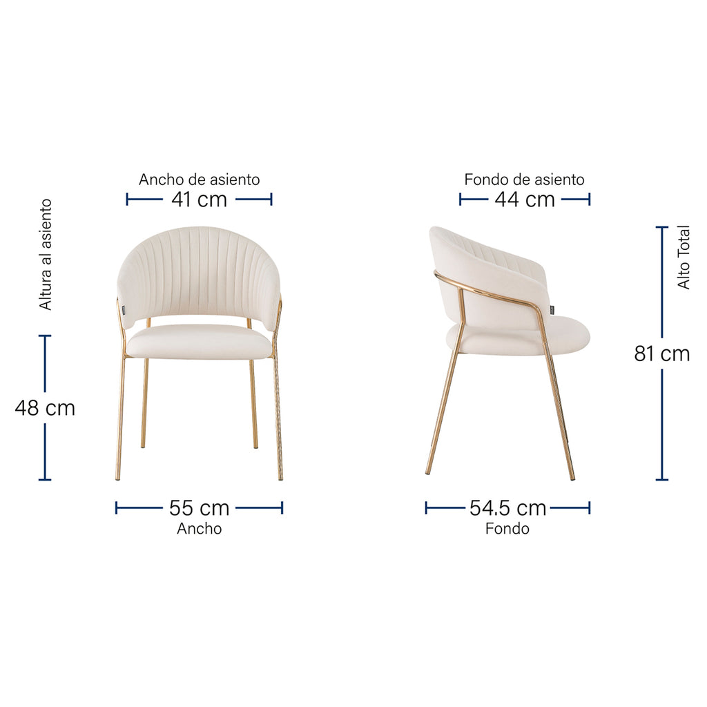 La Silla Bilbao es una pieza que combina diseño y sofisticación en perfecta armonía. Su estructura metálica en tono dorado y su tapizado en tela tipo velvet de tonalidades suaves —taupé, marfil, verde, gris y negro— reflejan una elegancia contemporánea que se adapta con facilidad a diferentes estilos de decoración. Cada color aporta una personalidad distinta, pero todos comparten una base cálida y cremosa que irradia confort visual.