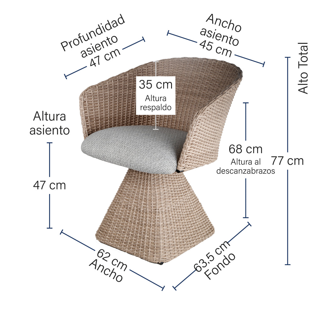 Más allá de su estética, está concebido para brindar comodidad en el uso diario. Su asiento amplio y su respaldo integrado generan una experiencia única que se adapta con naturalidad a espacios residenciales, restaurantes y proyectos de hospitalidad.