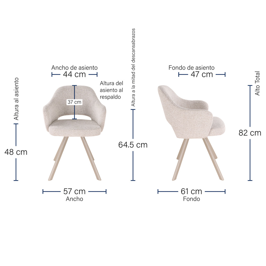 La estructura metálica con patas ovaladas en tono kaki refuerza su estabilidad y aporta un contraste elegante al tapizado. Cada detalle ha sido pensado para equilibrar confort, durabilidad y estilo, logrando una estética moderna y funcional.