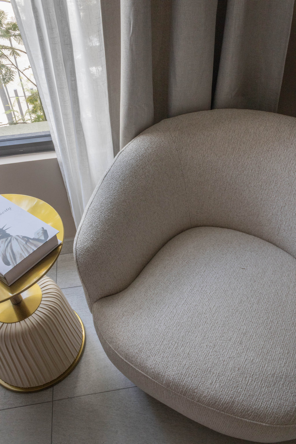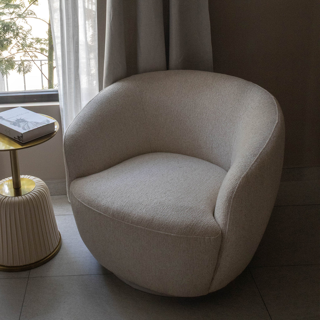 Este sillón cuenta con un diseño moderno y acogedor, ideal para complementar cualquier espacio contemporáneo. Con un respaldo envolvente y suaves curvas, proporciona un excelente soporte y comodidad al sentarse. El sillón dispone de un sistema giratorio que permite una rotación de 360 grados, lo que lo hace perfecto para áreas sociales o de descanso.